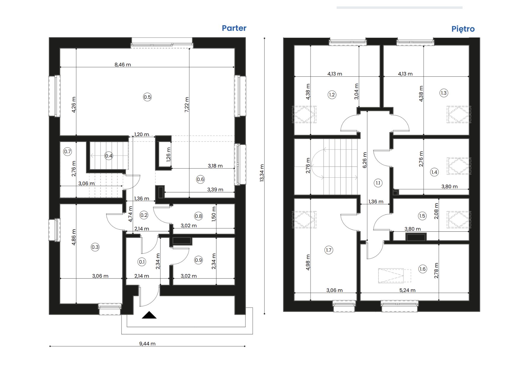 - Liczba kondygnacji: 2 (pełne piętro lub poddasze użytkowe)